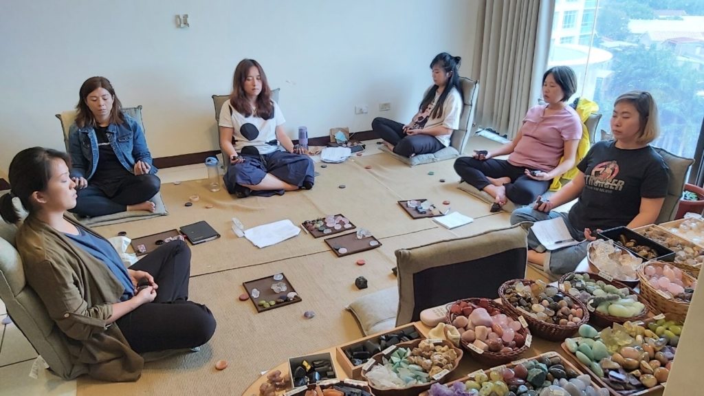 課程中那芙蒂老師用著輕鬆的方式引導我們與水晶做連結、做溝通,