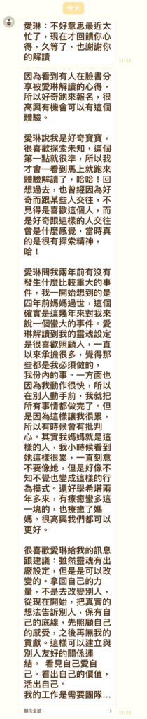 回顧從課程前的解讀、生活上的QA、課中的練習、課後的一對一….等等